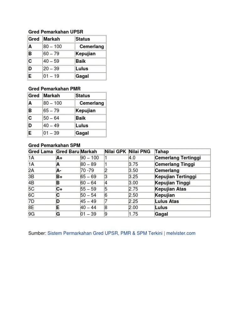 Gred Markah Spm - Gred Markah Peperiksaan Upsr Pt3 Dan Spm Terkini Mysemakan